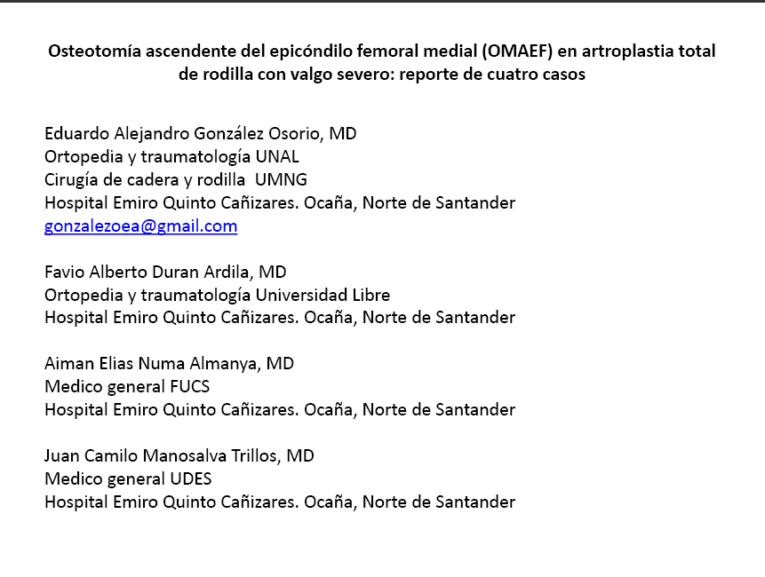 EP – 12. Reemplazo Total De Rodilla En Pacientes Con Luxación Inveterada De Rótula: Reporte De Dos Casos